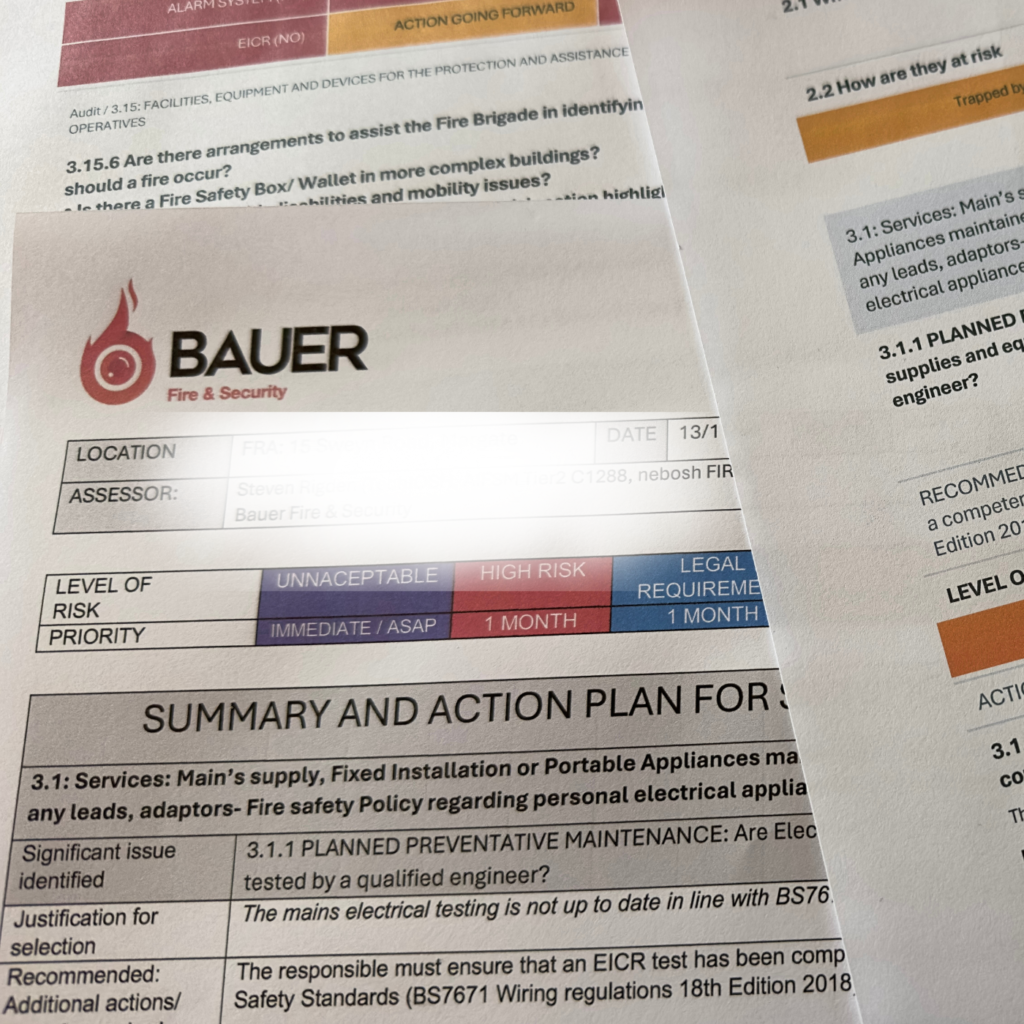 At BAUER Fire and Security, we provide comprehensive fire risk assessment services to help protect your property and ensure full compliance with fire safety regulations. Our experienced team conducts in-depth evaluations for both residential and commercial properties, identifying fire hazards and assessing the effectiveness of current safety measures.
